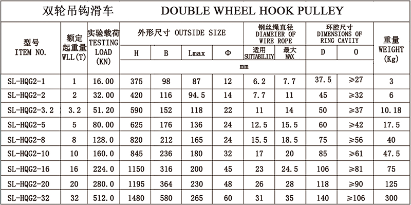 1、吊钩特点:优质合金钢模锻而成,3倍安全系数。2、滑轮:铸铁滑轮、铸钢滑轮、热轧滑轮。3、滑轮套芯:复合耐磨铜套、纯铜套、滚珠轴承、滚针轴承。4、其他吨位可以定做。
